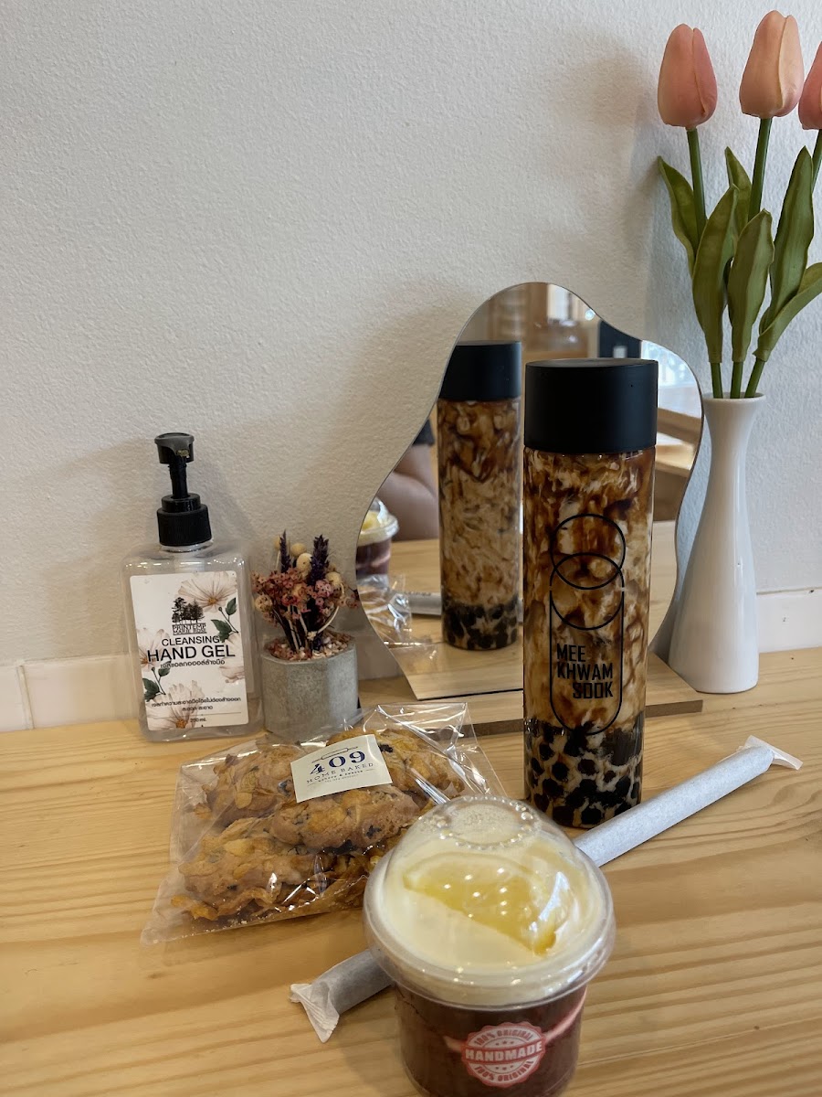 Among the highly recommended dishes, their delightful beverages stand out. The refreshing drinks are served in unique bottles that not only quench your thirst but also offer an Instagram-worthy moment that’s “ไม่เหมือนใคร” or “one-of-a-kind.” The café prides itself on cleanliness, giving patrons peace of mind as they indulge in delicious treats, with one satisfied customer remarking, “ร้านสะอาดมาก น้ำและขนมอร่อยมากครับ แนะนำๆ” or “The shop is very clean, and the drinks and desserts are delicious. Highly recommended!”